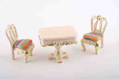 Faberge Table & chair trinket box hand made by Keren Kopal & Austrian crystals